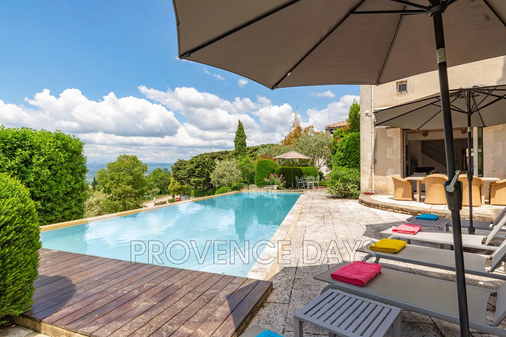 In the heart of delightful medieval village of Bonnieux this beautifully renovated townhouse is a sanctuary of calm and luxury, the perfect base for exploring the village and the region. A large 14 metre heated pool with a view out to Mont Ventoux is a part of a perfectly created garden haven complete with a fountain and shady terraces. The house is airconditioned for your comfort and generous bedrooms look over the garden, two of which look out to Mont Ventoux and the other onto the terrace and garden. - Inside - The house is split into three floors, the kitchen and living room are on the ground floor with easy access to the lower terrace and pool. on the entrance level there is a lounge and a ground floor bedroom, on first floor there are two bedrooms. From the front garden you enter the entrance level into the generous hallway, to the right you enter a high-ceilinged comfortable formal lounge with views to front and rear garden. Taking the stairs from the hallway down you arrive in the open plan kitchen-dining-lower lounge. The kitchen is formed around a central island that houses the large modern ran range and high seating. The kitchen is well equipped to a high standard and entirely perfect for creating some Provencal inspired dishes. The inside dining area has a large round table with seating for 6, in front of this is the Lower Lounge with views out to the garden and terrace and a TV Laundry room, with washer and dryer Separate w.c. - Bedrooms - The house sleeps 6 people in 3 bedrooms, with 3 bathrooms. 2 can be double/twin rooms. 1 bedroom is on the ground floor. All three bedrooms are air-conditioned. Bedroom 1 on the right is a bedroom suite with a view to the front garden with a 180cm king size double bed. Bathroom 1 serving the Bedroom 1 has a walk-in shower, sink and separate w.c. Bedroom 2 upstairs are 2 large bedrooms both with views to front and back gardens and across the valley and village. with 180 cm king-sized double bed, or two single beds. Bedroom 3 on the opposite side of the house to bedroom 2 but the same size. with two single beds, or a 180cm king-sized double bed if preferred. Bathroom 2 with a bath and shower over, w.c. and sink. The bathroom sits between the two bedrooms and is accessed by either bedroom. - Outside - You step from the village into the welcoming front garden that immediately makes you feel relaxed with its embracing foliage and fountain. The planting is mature and well maintained, the first terrace around the front of the house is an ideal shady spot on warm days, stepping around the side of the house is the side garden leading down to the pool level. On this level you find the irresistible 14m heated infinity pool with views across the valley. Around the pool are sunloungers and umbrellas and at one end a round table in a shady area. Outside of the lower lounge is a dining terrace with a large table and a retractable shade. There is room for two cars in the gated parking area of the house or on the street outside the house.