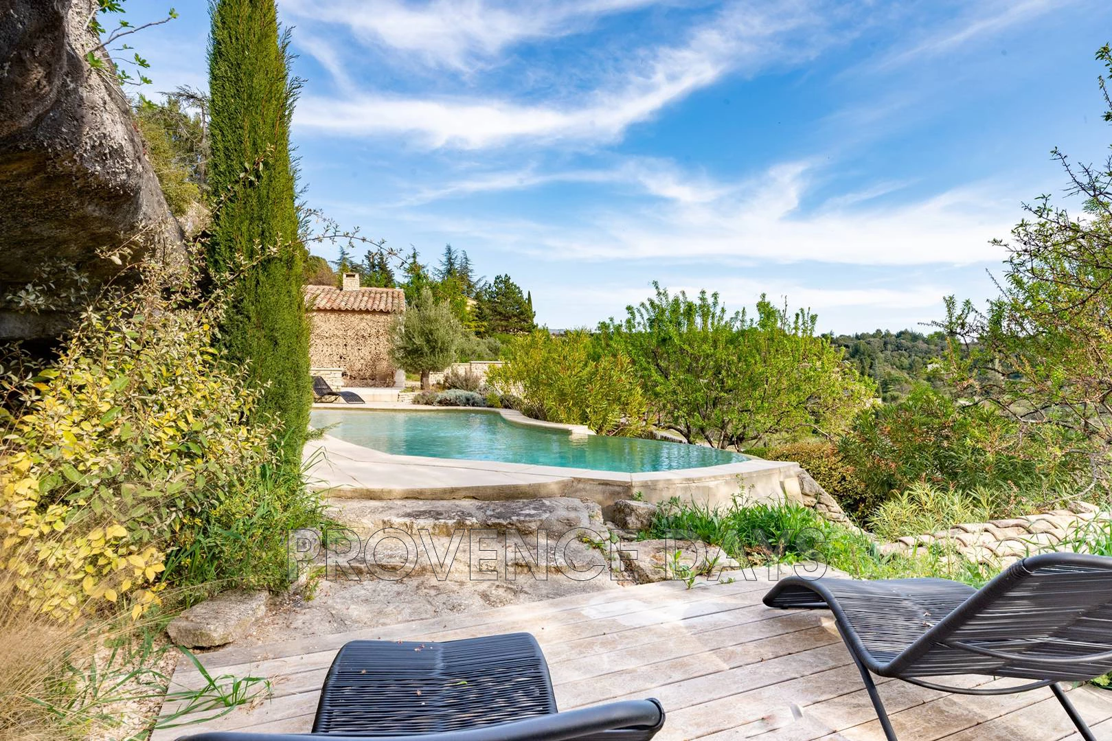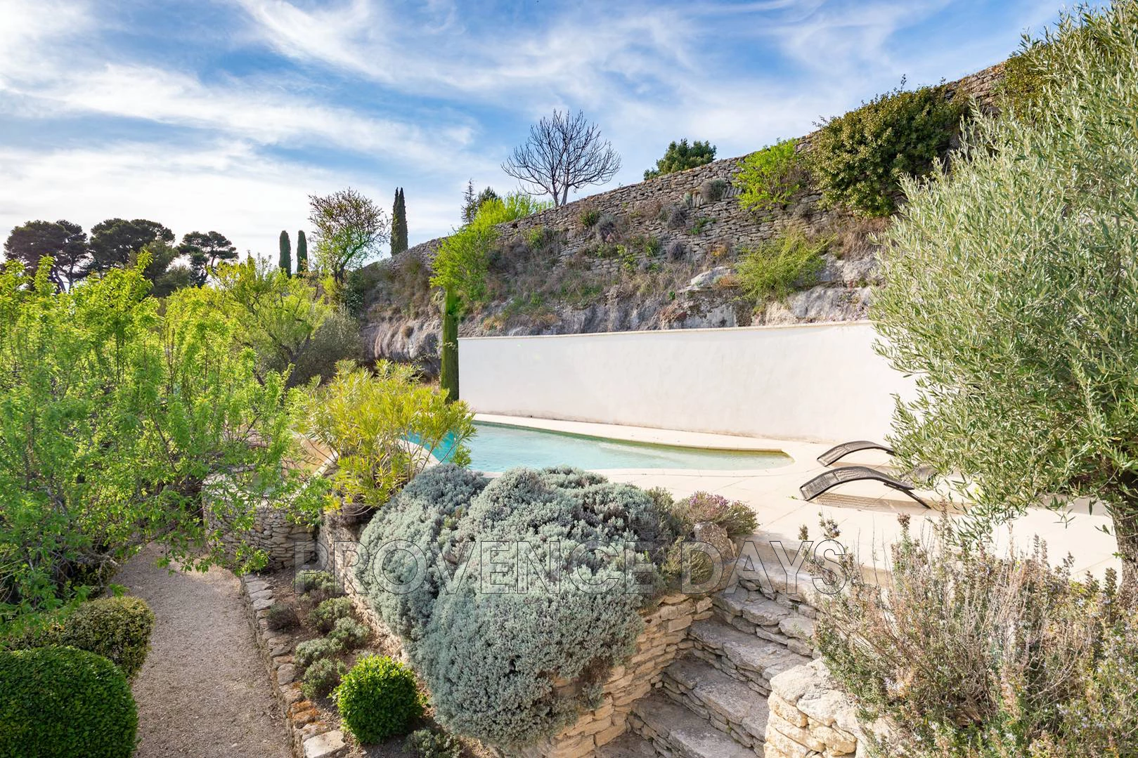 Located at the edge of the superb village of Bonnieux, accessible in 5 minutes on foot, and sheltered against a small limestone cliff, this house for 4 people is full of charm thanks to its authenticity and its modern, tasteful and original decoration. You climb some steps to get above street level and immediately the views reveal themselves to you. At the top of the steps is an ideal coffee and reading nook. - Inside - On the ground floor, from the entrance, one enters a beautiful and spacious dining kitchen this gives access directly to the outside. There is also a workplace and cosy lounge area. Kitchen: A welcoming room with beamed ceiling, old tiled floor, open fireplace, round dining table and door out to the terrace and garden. The kitchen has oven, large hob, fridge and dishwasher and Nespresso coffee machine. Study: between the kitchen and the study has a writing desk and a view to the garden. The house has WiFi internet. Living Room: A cosy relaing snug with steps up to open the french windows onto the garden. * Care must be taken on these steps not for children - Bedrooms - The house sleeps 4 people in 2 bedrooms, with 2 bathrooms all on the top floor. Bedroom 1:With a 1.8m wide double or can be split into 2 singles, The view looks out over the garden on onw side and out onto the valley on the other. The large en suite bathroom has a walk in shower, basin and WC. Bedroom 2: A 1.6m wide double bed with views onto the garden. Directly accross the hall is the bathroom Bathroom: This generous bathroom has a freestanding bath with hand hed shower, basin and WC. - Outside - The garden not overlooked and totally private, it is beautifully planted with olive trees, lilacs, wisteria and other Mediterranean species, leads to the wonderful heated infinity pool, situated in a terraced area that gives bathers a wonderful view into the valley. A pool house is outfitted as a summer kitchen and is complete with a large terrace for dining offering breathtaking views to complement summer lunches and dinners. The pool measures 8m x 4m and is fenced and gated at the terrace for safety. For outdoor eating there is a large table on the terrace overlooking the view, a pergola for shaded dining and also the pool house summer kitchen with its large viewing terrace. You can park behind the gates of the houselower levelor on the street right outside the house.