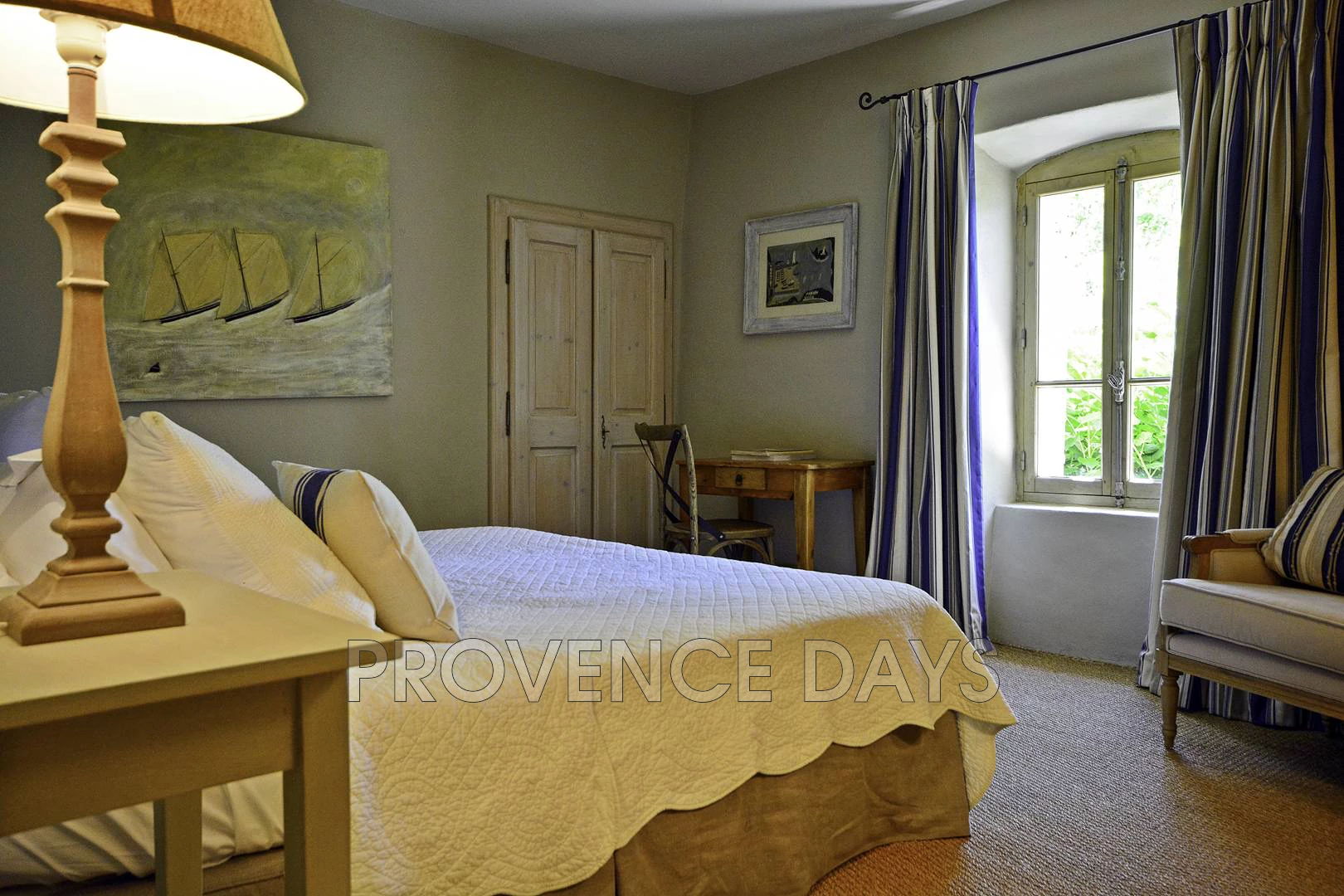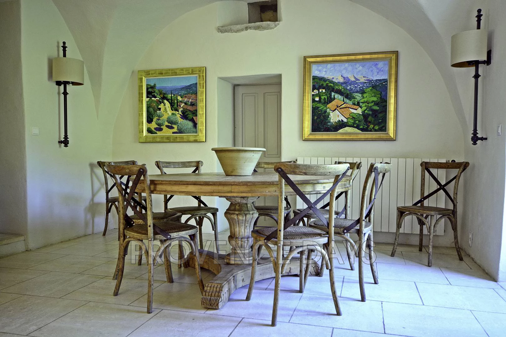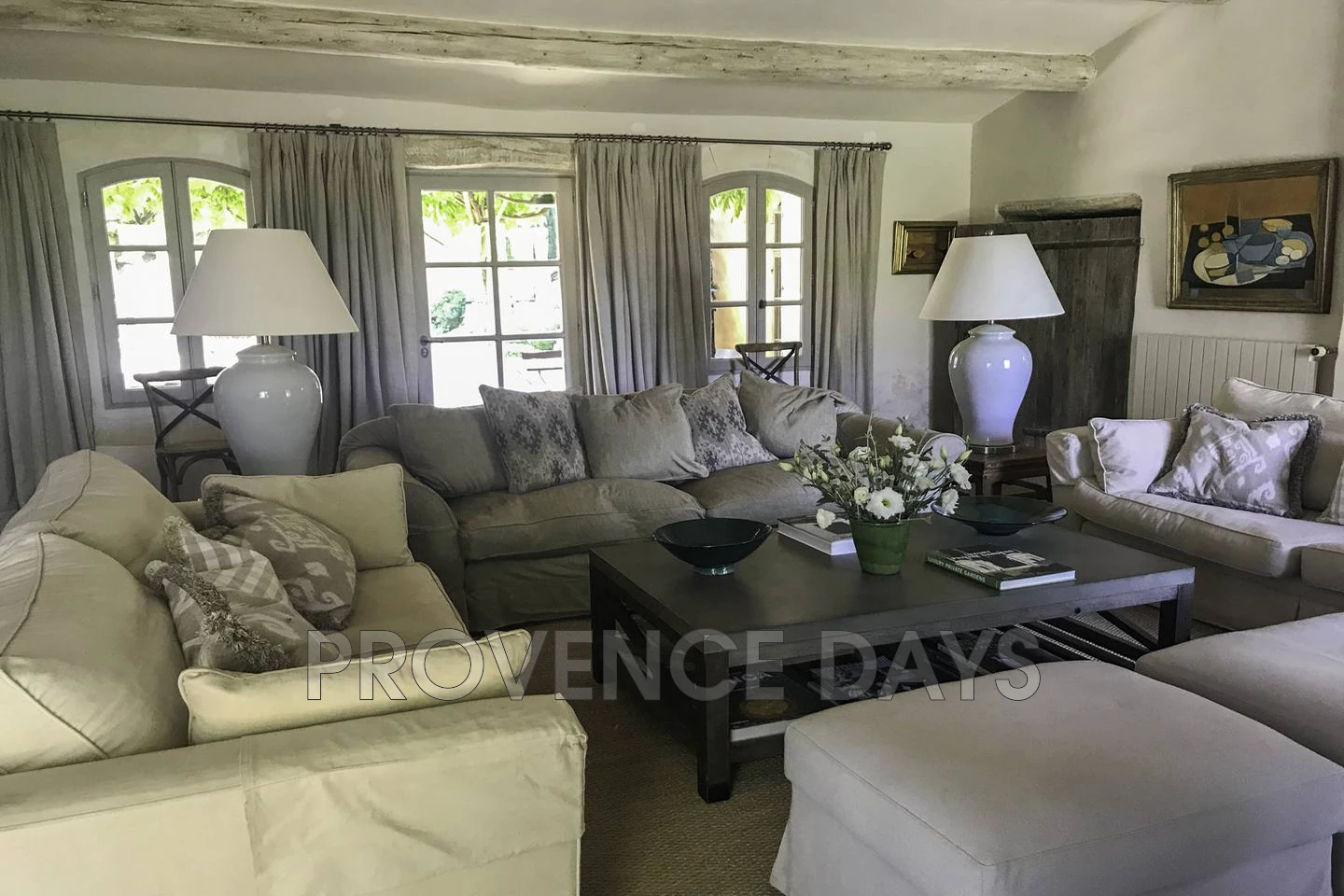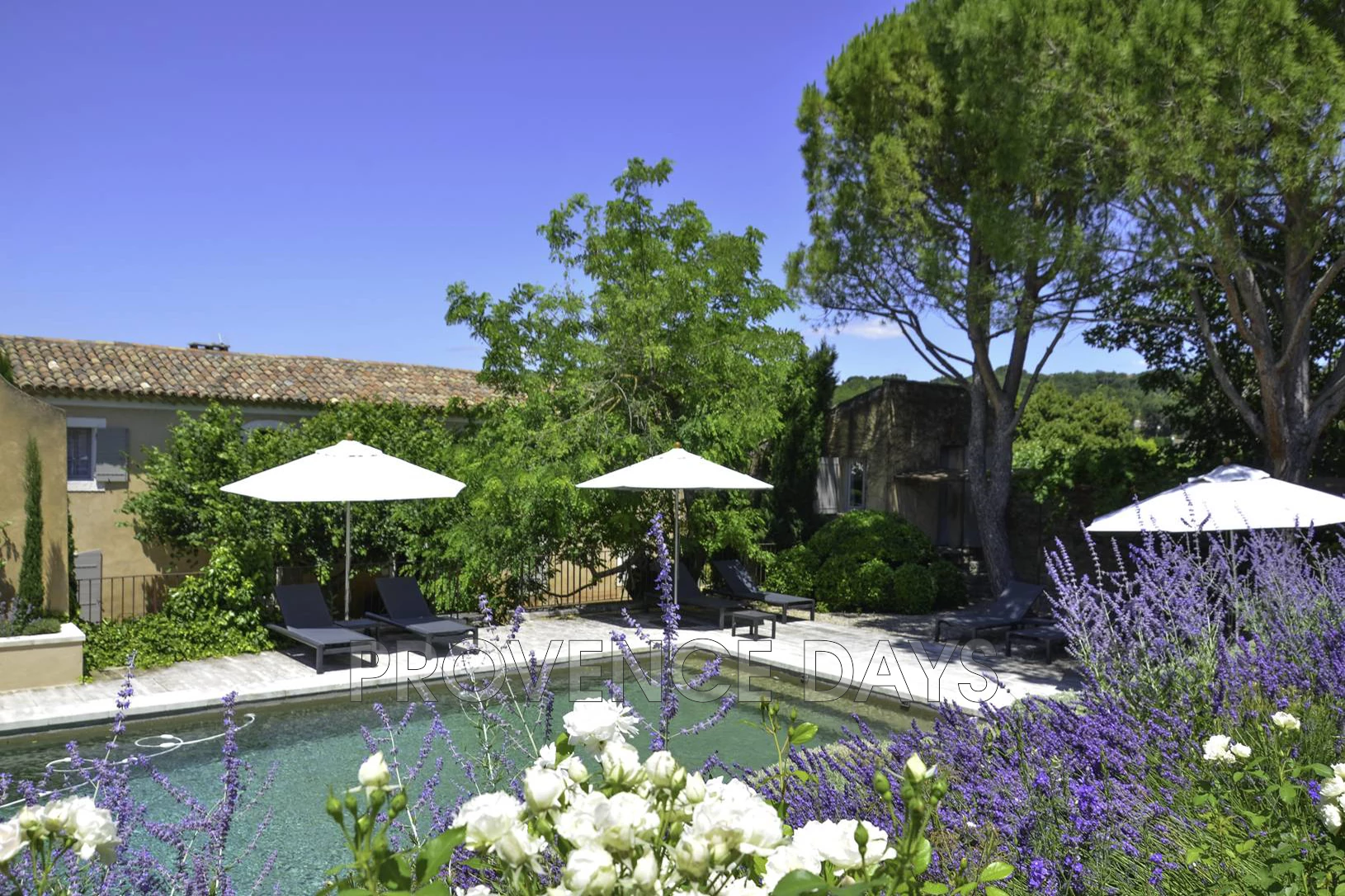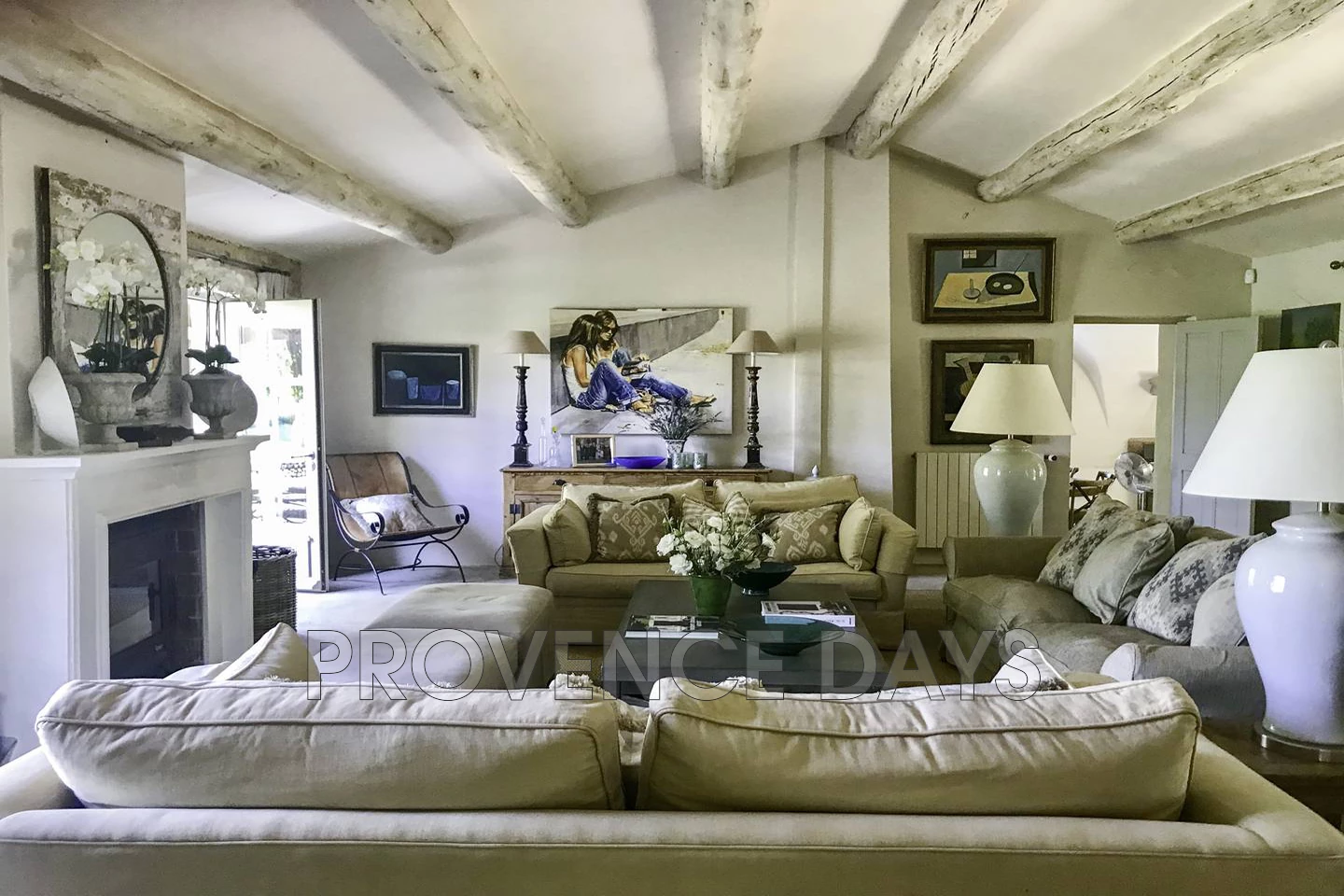 The impressive Mas les Tour Ouest is a beautifully renovated French farmhouse, sleeping 12 people, with comfort and relaxation easily catered for. The house is generously proportioned being 300m2 spread over 2 levels. The grounds ate extensive with sculpted gardens, a large heated pool and views to the Luberon hills. - Inside - You enter the courtyard and enter into a central hallway. Snug: From the courtyard the main entrance opens to a central hallway. To the left you come to a welcoming and calming area with vaulted ceiling, open fireplace and comfortable chairs. Kitchen: Leading on from the snug you find a true chefs kitchen again with a wonderful vaulted ceiling. The kitchen is well equipped with LaCanche range stove, a 3m long central island, large stone sink, and work tops along the side. Equipped with fridge freezer, dishwasher and air-conditioning. The kitchen allows easy access outside to the rear of the house. Dining Area: At the back of the kitchen is a round dining table with seating for 10 and from here you can walk through to the sitting room. Utility: Housed here is a second fridge freezer and guest w.c. Sitting Room: A large room housing four comfortable sofas a log burning stove and TV corner. Light floods in from the door and windows to courtyard side and from the large French doors leading to the wonderful west terrace. Laundry: Behind the sitting room there is a laundry room with a washer and dryer. - Bedrooms - The house sleeps 12 people in 6 bedrooms, with 5 bathrooms. Three are 4 bedrooms on the first floor, one of which is a family suite (childrens room accessible through parent room). One bedroom is on the ground floor and an extra one in the Pigeonnier across the courtyard. First floor: Master bedroom 1: with king sized four poster bed (180 cm) and ensuite bathroom. The room has air conditioning and doors open onto a juliet balcony overlooking the courtyard. Bedroom 2: King size bed (180 cm, can be made up as twins) with ensuite shower room and views to the courtyard. Bedroom 3: Family suite with queen size bed with an ensuite bathroom and door to. Bedroom 4: With twin beds (suitable for children) with window views to fields. Ground floor: Bedroom 5: super king size bed (180 cm) with ensuite shower room and views to the courtyard. Pigeonnier: Across the courtyard is a small tower and inside are a flight of stairs up to a bedroom with a l double bed (140cm) that opens out directly onto the swimming pool terrace. On the lower floor there is a with shower room and separate toilet. - Outside - You arrive along a private road to the house and have a shaded parking in area. From here you enter the courtyard with is delightful trickling fountain and welcoming verdant shade giving access to the 12m x 6m heated pool that looks over the house. The house sits on 1.5ha of land giving privacy and plenty of places to explore and play for. On the west side of the house adjoining the sitting room is a dining terrace and a shaded lounge area, set against the beautifully sculpted topiary garden with views out to the Luberon hills and village of Goult. Ideally placed in this area is a boules court There is another outdoor dining option in the courtyard under a shading wisteria vine.