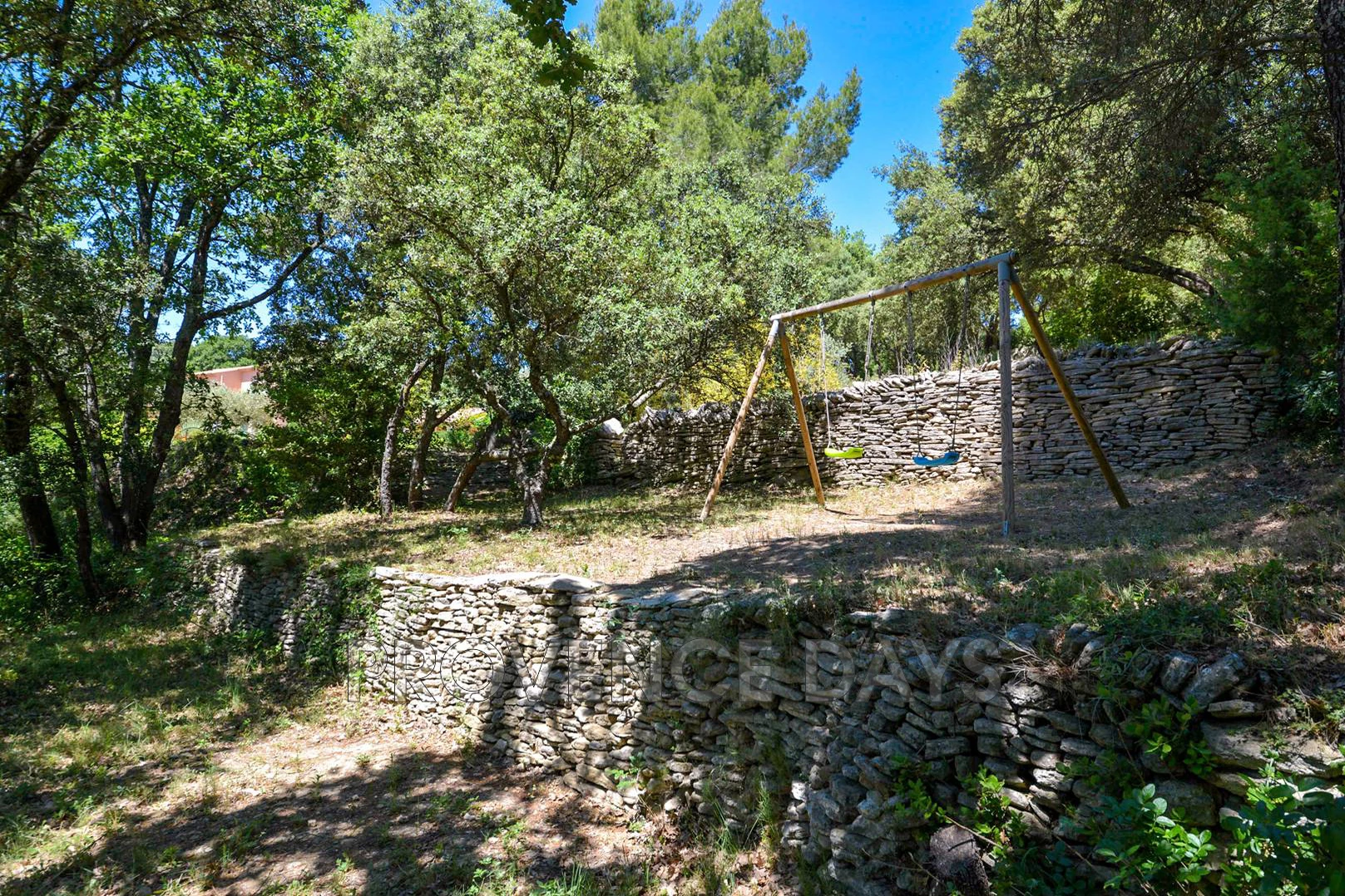This impressive 5 bedroom Provencal villa is set in a secluded and tranquil location. Explore the extensive grounds which range from beautiful gardens to terraced woodland and olive groves. Situated on a small hill, the house benefits from views over the grounds and woodland, past the church of L'Isle-sur-la-Sorgue and out to the distant Alpilles hills. - Inside - You enter the villa into a hallway which is the hub of the home. From here you can wander into the 65m2 living room and dining area, beyond which lies a fully equipped kitchen and summer dining area. To your left is an office/bedroom equipped with bunk beds. A hallway leads on to a double bedroom, a downstairs shower room with toilet, and a utility room for laundry. In front of you a staircase takes you up to the second floor to a large open landing where each of the three remaining bedrooms open out. Also on the landing is a separate toilet and access onto the veranda with far reaching views. The villa is decorated and furnished in a calming, relaxed manner which manages to combine elements of contemporary style with traditional Provençal touches and has a spacious 320m2 of floor space inside. From the kitchen you can access the covered dining terrace, perfect for day and night time meals and is equipped with a pizza oven and BBQ grill. - Bedrooms - Maison Saint Antoine has 5 bedrooms and can comfortably sleep 10-12 people. - Outside - This impressive Provençal villa is set in grounds that range from beautiful gardens to terraced woods and olive groves. The setting is secluded and tranquil and you enter via a tree-lined driveway through a large automatic iron gate. On parking at the house you have the view to your left of the large 12m x 6m pool surrounded by its planted terraces and shading trees.The pool has sunloungers and a shower, and there are paths that lead you off to explore the rest of the garden, one of which leads to a swing set for children. The house sits on a small hill so it benefits from views across the property and woodland and then past the church in LIsle-sur-la-Sorgue all the way out to the distant Alpilles hills.