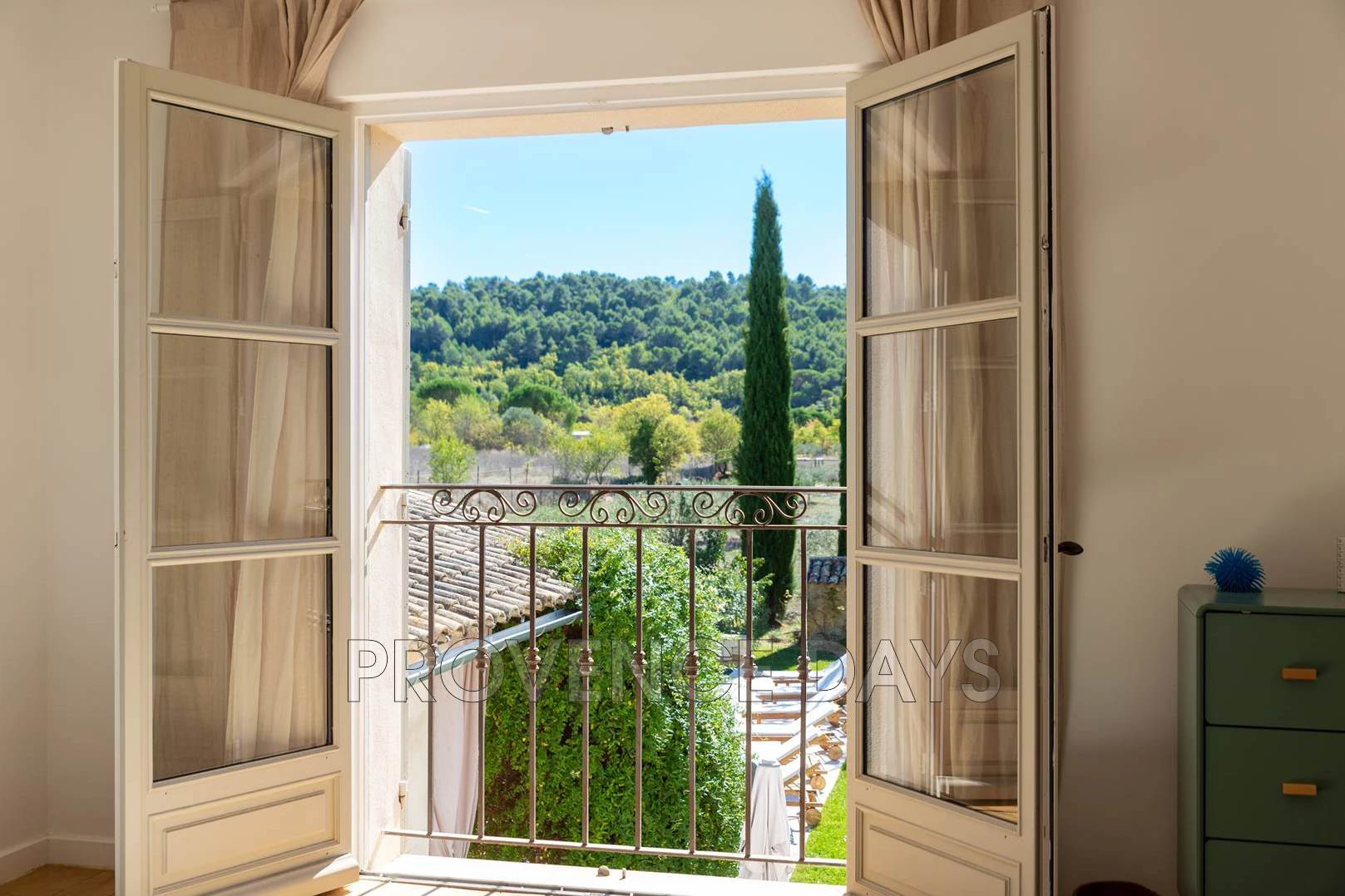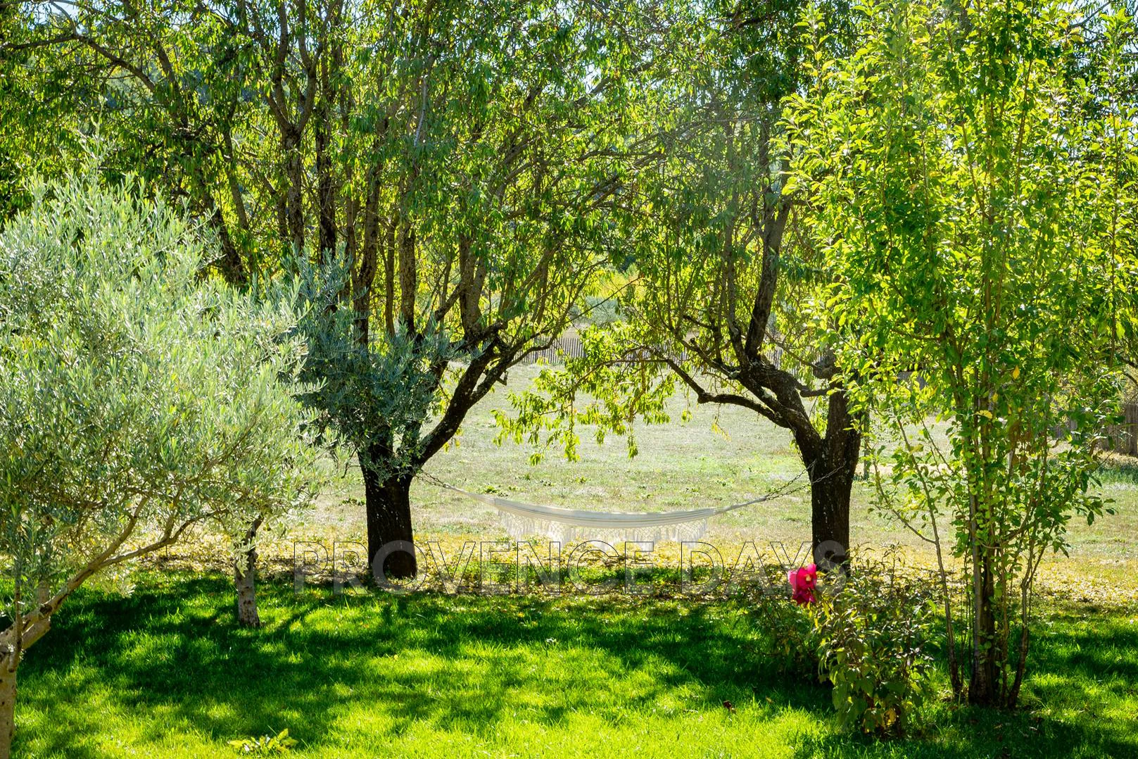 At the end of a quiet leafy lane, set in a quiet countryside with wonderful views this house has the best of both worlds, just a few minutes walk away lies the picturesque and captivating village of Lourmarin, so you can equally enjoy wandering into the village with all its amenities and attractions, or exploring the surrounding countryside. The 4 bedroom house has a large garden with a heated pool and shaded terrace for relaxing. The house inside has an open plan layout on the ground floor with 2 bedrooms and a further 2 air-conditioned bedrooms on the 1st floor. The house is designed to make the most of its indoor and outdoor spaces with plenty of access to the garden and letting light and fresh air stream in. - Inside - When you walk through the front door you are presented with beautiful generous sized kitchen and a dining area with a view to the garden with seating for 6-8 people. The kitchen is fully equipped with all you should need to create your selection of French culinary delights during your stay with a rear kitchen that houses the refrigerator and washing machine. However, the star of the show has to be the view out to the garden through the patio doors opening out onto the shaded pool terrace and garden with views to the countryside beyond. Following the kitchen dining area is a delightful cosy lounge with two comfortable sofas, TV and access out to the garden and the outside dining terrace. From the sitting room you have access to the 2 ground floor bedrooms and the stairs up to the bedrooms above. - Bedrooms - The house sleep 8 in 4 bedrooms, all 4 with en suite bathrooms, 2 on the ground floor and 2 upstairs that are airconditioned, there are also 2 independent w.c.s. - Outside - The garden stretches out into the landscape with views to the hills beyond, near to the house you have the wonderful 12m x 5m heated pool which looks so inviting. For sun worshippers there are sun loungers along the pool terrace. To relax away in a shady spot there is a welcoming shaded terrace projecting from the house. Here you will find a wonderful sofa for lunging on and a table and chairs. A dining terrace accessed from the kitchen is ideal for alfresco dining and also has a gas BBQ for cooking outdoors too. A stroll amongst the trees will find you a shady hammock slung beneath the branches and plenty of space for little ones to play in safely surrounded by a fence. You arrive at the house along the county lane and the house has electric gates giving access to ample parking for at least 4 cars.