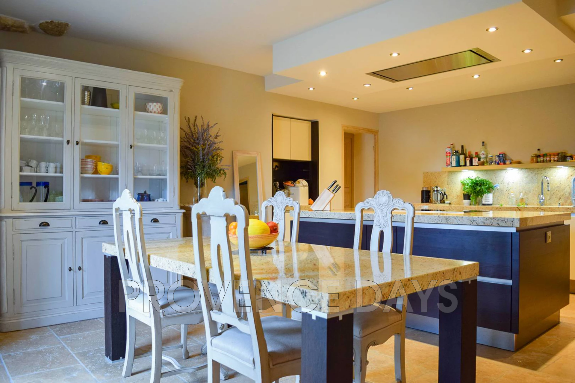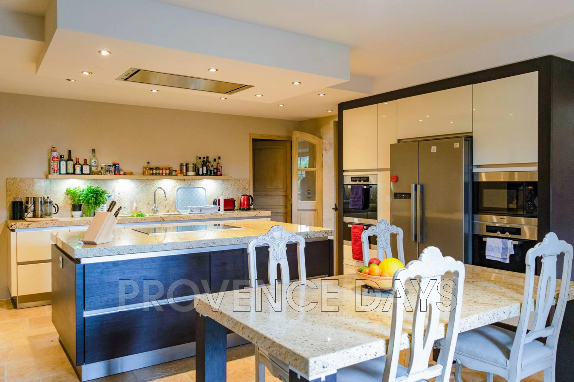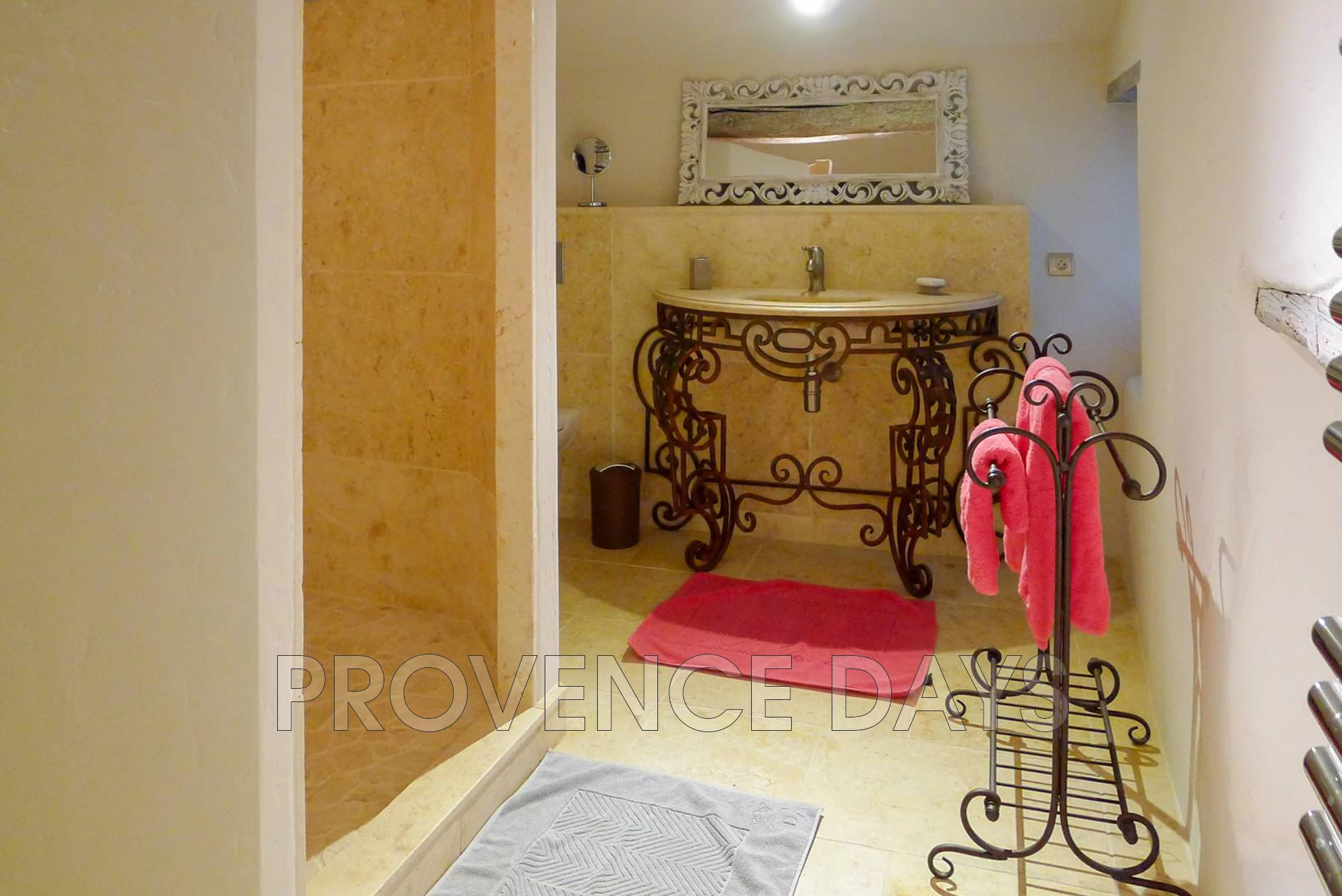 This large Provencal stone bastide is full of character and has a lot to offer the lucky visitor. At the foothills of the Luberon mountain range a stones throw from Menerbes, you have easy access into the village and its well recommended eateries and boutiques. A 15-minute walk would take you straight into the village. The grounds offer views across the Luberon valley towards the Vaucluse hills. The traditional feel of the house and its decoration set you up for a stay of pure relaxation. - Inside - You will feel at home immediately as you enter the cool of this Provencal house. From the entrance the large kitchen is located to the left, with an informal dining area. Straight ahead are the steps to the upper levels. On the right of the entrance hall, you have access to the vaulted formal dining room the lounge and a study. Living Room: A big room extending across the full length of the house, with TV and fireplace at one end, and a separate sitting area by the French doors to the garden at the other end. TV has UK channels and the house has WiFi internet. Kitchen: The kitchen is perfect for keen cooks, equipped with everything you will need to whip up a lovely dinner. The double oven and microwave available and a hob on the island, and a large fridge/freezer are amongst some of the equipment available. The island can double up as a preparation area as well as plenty of room along the worktop along the back wall. Utility room: There is access here to a good-sized utility room houses washer and dryer and sink. Dining room: A vaulted dining room off the entrance hall with dining for 10 Living room: On from the dining room there is a comfortable sitting room with open fireplace. Office : Off from the dining area is also a office with another sofa, bar area and workspace with desk. Guest WC: Dowstairs off the entrance hall. -Bedrooms - The house sleeps 10 people in 5 bedrooms, with 5 bathrooms. 1 bedroom is on the ground floor. All of the bedrooms are air conditioned. A baby cot is available. First floor Bedrooms: Bedroom 1: Is full of character with original farmhouse features still in place. This spacious bedroom benefits from air conditioning and a large bathroom with tub, shower and double sink and WC. With a King bed (or two single beds). Bathroom 1: En suite to bedroom 1, with shower, basin and WC. Bedroom 2: With a King size bed and en-suite bathroom with access onto a balcony overlooking the garden. Bathroom 2: En suite to bedroom 2, spacious shower, marble sink and WC. Second floor Bedrooms: Bedroom 3: On the top floor and air-conditioned, with a Queen size double/twin beds. Bathroom 3: Ensuite to bedroom 3, shower, basin and WC. Bedroom 4: On the top floor and air-conditioned, with a Queen size double/twin beds. Bathroom 4: Ensuite to bedroom 4, shower, basin and WC. Ground floor Bedroom: Bedroom 5: Accessed from the kitchen with a King bed (or two single beds) with access on to the garden terrace Bathroom 5: Ensuite to bedroom 5, shower, basin and WC. - Outside - The grounds spread out over 2 acres of land, incorporating a beautifully manicured garden and fountain, a large heated pool (12 x 6) with shutter cover for security, a new pool shower is discreetly placed off to the side of the pool. The house has wonderful views of the Luberon valley and hillside villages of Gordes and Cabrieres. You can also indulge in a game of boules or tennis or wander through the olive grove and lavender. For outdoor eating the 2 tables seating 10 benefit from the shade of a large mulberry tree. They have direct access to the kitchen via French doors. Secure and shaded parking behind electric gates is a bonus.