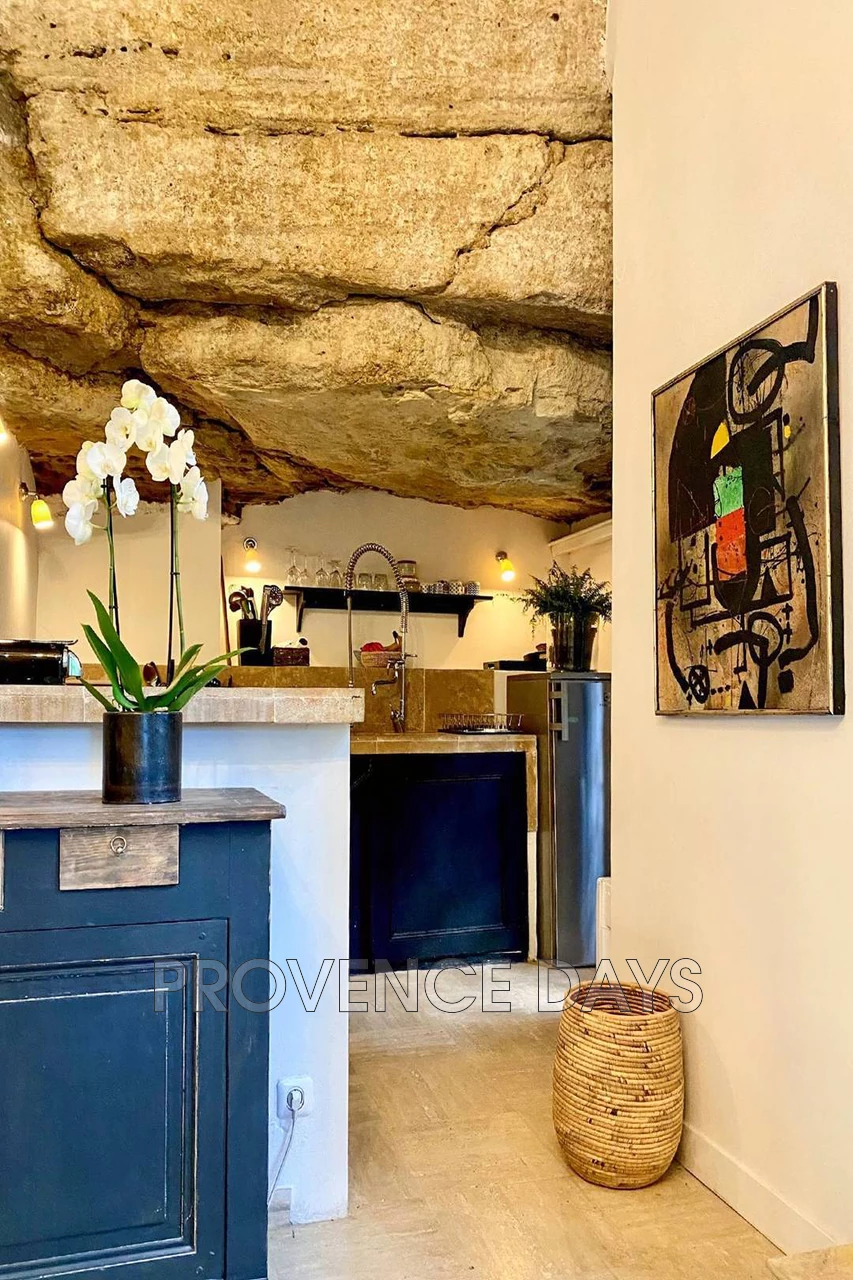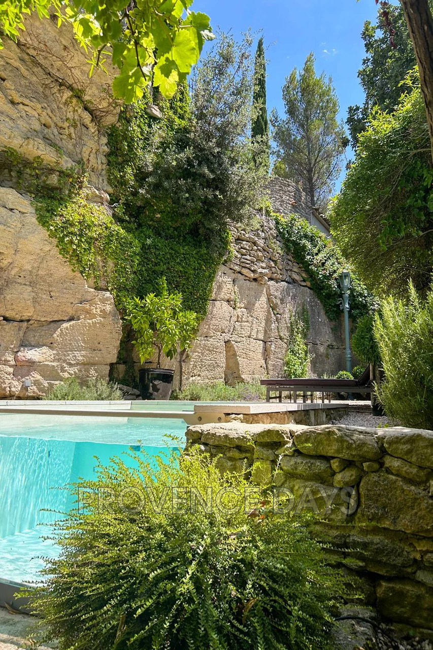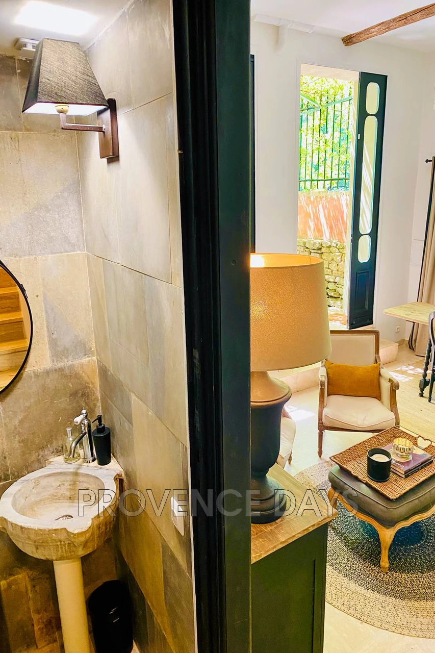 The house sits just above the village of Menerbes, in a quiet street leading to the countryside but within just a minute of all that Menerbes has to offer. This is a delightful 3-bedroom house has been renovated with an eye for comfort and an eclectic style. - Inside - Set on 3 floors the house at the ground level has an open plan living room, dining area and kitchen, off the hallway is an entertainment room. On the second floor are two bedrooms, accessed from the living room, and the grand third bedroom is on the third floor and is accessed from stairs in the garden. Living room area: With views onto the garden through the spectacular patio doors there is sitting area with 4 comfortable chairs and a low table next to a fireplace. Dining room area: A large wooden table seats 6 or more people again with views to the garden and front of the house Kitchen: The kitchen is unusual in that it has been built into the marvelous rockface and the stone gives the room a wonderful ambiance. The kitchen is well equipped with an induction stove, oven, dishwasher, fridge, and a washer-dryer. . Entertainment room: Featuring two sumptuous chaise-longe style sofas and a large smart TV this comfortable space is an ideal relaxing room. Off this room is a bathroom with a wc Guest WC: The guest WC is on the ground floor. - Bedrooms - The house sleeps 6 people with 2 bedrooms on the second floor accessed from stairs in the living room area, and 1 bedroom on the third floor accessed from stairs in the garden, and three bathrooms. Bedroom 1: A double room with a 1.6m/5.25ft-wide bed and en suite bathroom with shower, basin, views to the front of the house and across the village Bedroom 2: A room with two single beds and en suite bathroom with shower, basin, views to the front of the house and across the village Bedroom 3: This room is spread out across the entire third floor and includes the upper terrace that is accessed via a wall of patio doors and windows. The bed is a 1.8/6ft king-size bed, there are two comfortable seating areas and a fireplace. There is a fabulous walk-in shower with a floor to ceiling glass window to let in light and a view of the room whilst you shower Stairs lead up to a room with a wc and basin - Outside - The garden consists of several levels framed by the beautiful rock face that walls one side of the garden. You begin at the dining terrace outside the kitchen, here there is a dining table and BBQ shaded by a pergola with a climbing vine. From here you can see the beautiful and inviting 2m x 2.2m dipping pool, with its glass front, perfect for cooling off on hot days. Next to the pool you can take a sunlounger and relax at the pool side in the sun or shade. A set of stairs leads you up to a terrace which leads to the magnificent bedroom 3. This terrace has a view across the village and countryside with relaxing seating to take it all in The house has an off-street parking spot, and is situated at the end of a small road used only by residents, so it is very quiet.