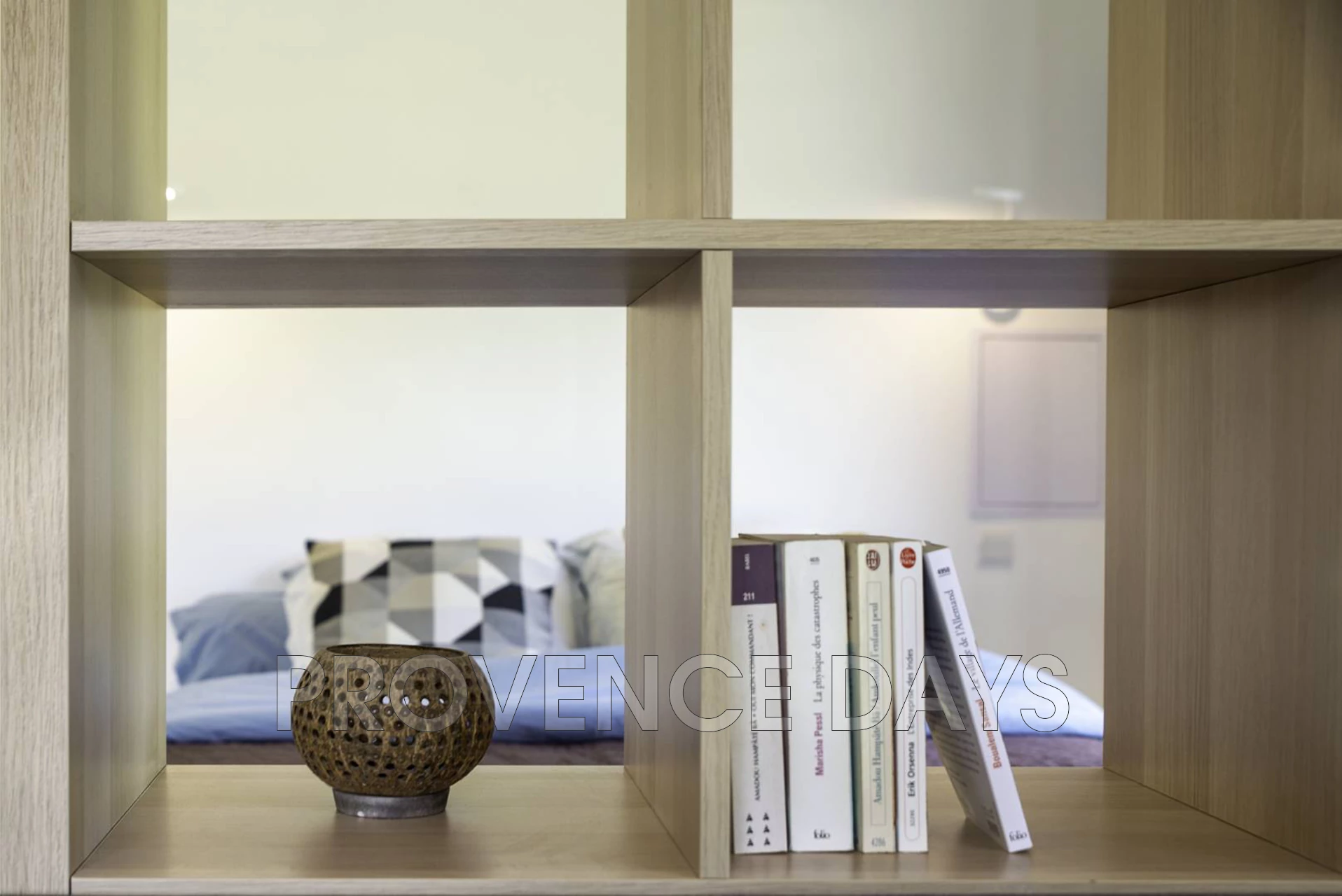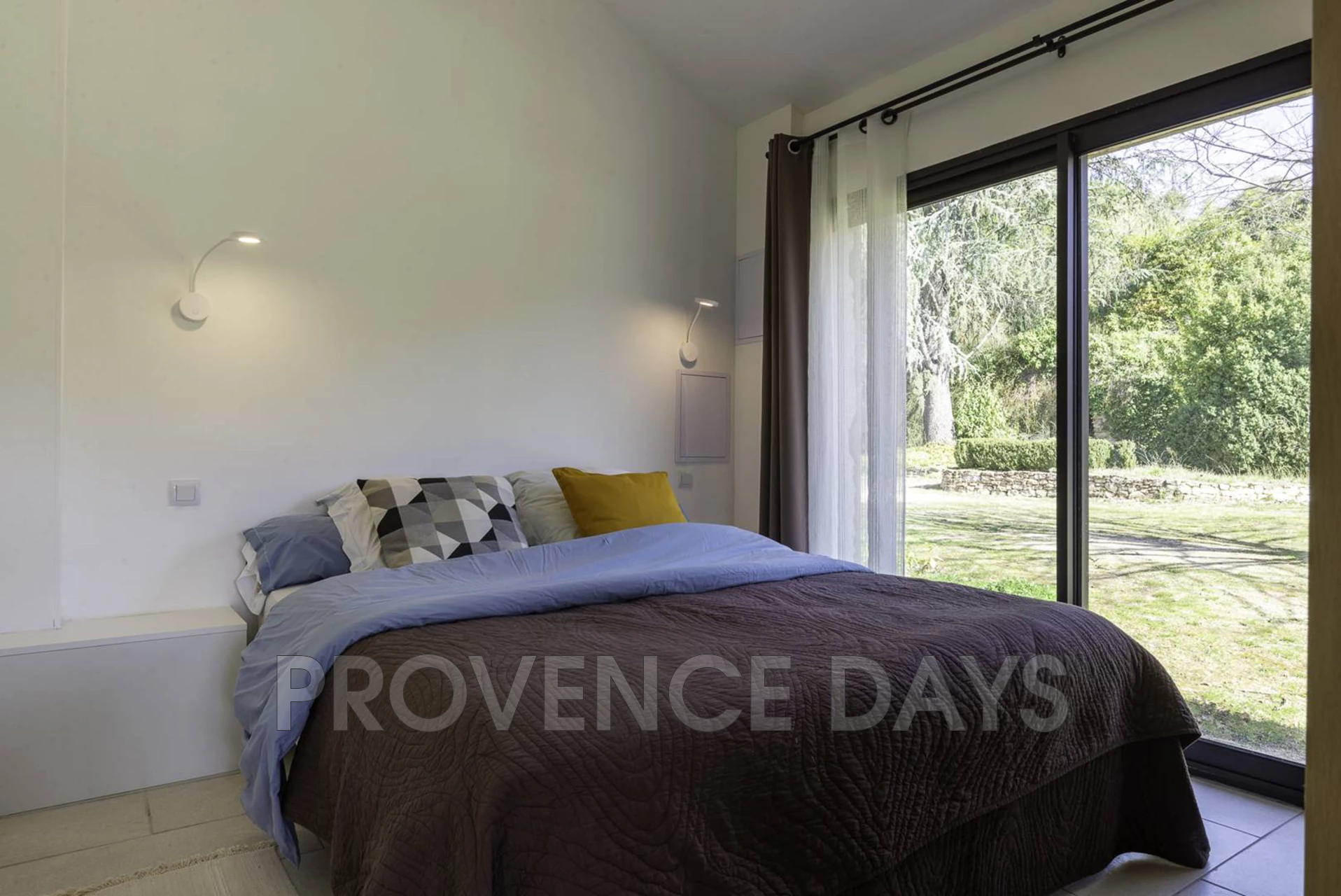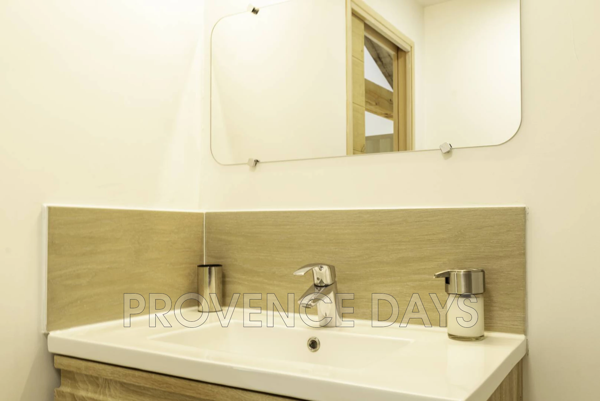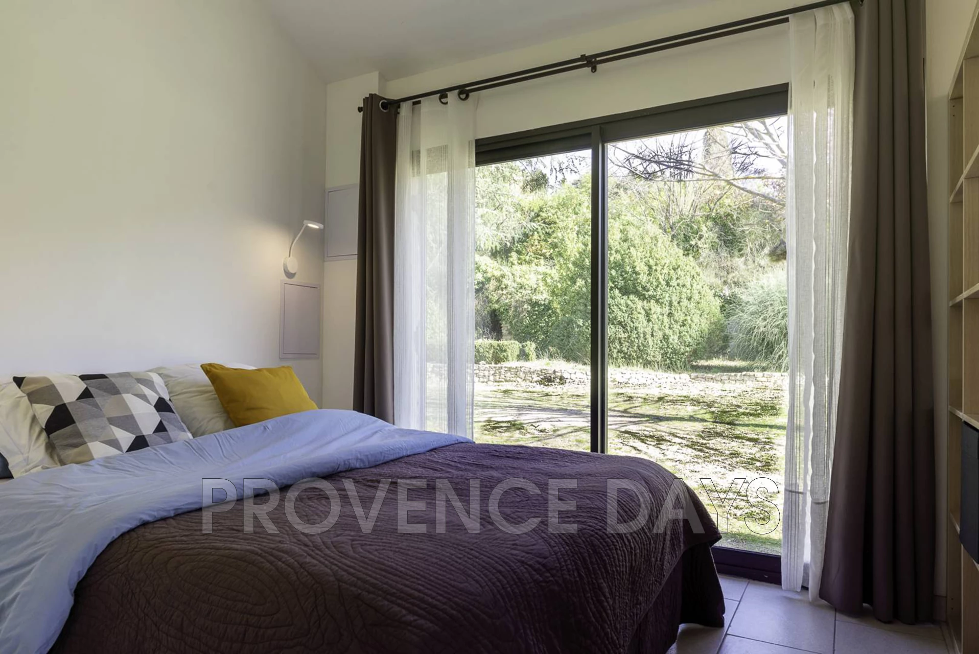 This beautiful air-conditioned space is bright and airy thanks to its 2 bay windows overlooking the large garden and feels spacious with its beautiful high ceiling. Ideal for a couple, it will be the perfect starting point to discover the Luberon and its medieval villages and cities or for simply taking it easy and relaxing. - Inside - A lounge area with sofa, coffee table, television and WIFI, The open kitchen is spacious, with 2 induction hobs, an oven, dishwasher, refrigerator, coffee maker, kettle, and toaster. A table for 4 people allows you to dine inside. The sleeping area is separated from the rest of the house by a beautiful bookcase and includes a double bed (160cm), two bedside tables, and wall lamps. The large shower room is enclosed and has a w.c., large washbasin with storage unit, shelf, and walk-in shower. - Outside There is a shaded pergola to host lunches and dinners in summer, equipped with two deck chairs for a moment of relaxation with a view of the Luberon. An outdoor kitchen is also at your disposal under a large shaded awning, equipped with a barbecue. Finally, you will have access to the large swimming pool 6 x12m, open from May to September, surrounded by a beautiful terrace equipped with sunbeds, in the middle of lavender and rosemary trees, A ping pong table and a boules court are also at your disposal. There is also plenty of room to park your car near to the apartment. The appartment has its own private terrace but the gardens and pool are shared with the owner.