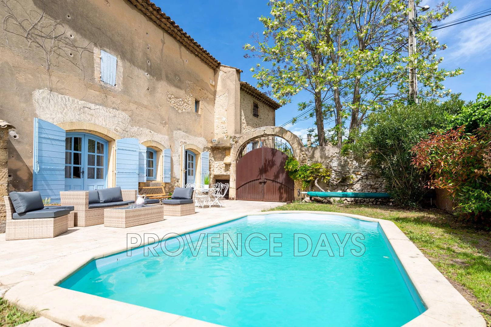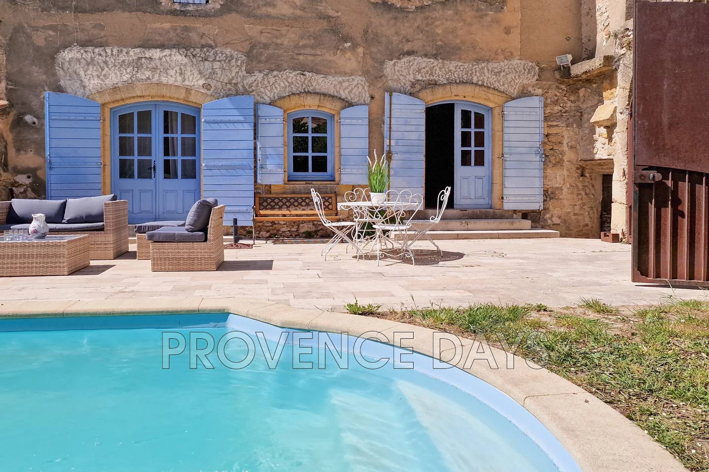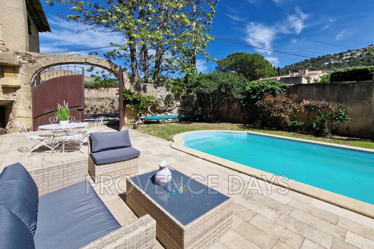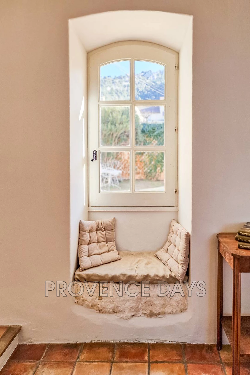 In the heart of the village of Robion is a hidden gem of a house, an authentic Provencal village house with 3 bedroom and the added bonus of a garden and pool tucked away behind the garden walls and stone archway. In a quiet part of the village the house is close to all the amenities of Robion but also close to the walking trails into the Luberon countryside. The archway entrance under the welcome shade of an acacia tree leads you into the delightful protected garden and pool area of this beautiful old town house that is accessed from the pool terrace. - Inside - Inside you find your self in a generous hallway with the kitchen to your right up a few step and the living room to your left, the hall way contains a seating area and workspace. The Salon is cosy with a seating area looking out to the pool, there is a dining area, a fireplace, a tv and a lovely window seat. The kitchen is well equipped with all you need cater for your stay including an oven, hob, fridge-freezer, microwave, and Nespresso coffee machine. - Bedrooms - The house sleeps up to 6 in 3 bedrooms 2 doubles and 1 twin room with a shared family bathroom and w.c. - Outside - The enclosed garden has a large terrace long the front of the house that has a several places to relax and dine including a comfortable outdoor seating area overlooking the pool. Unusually for a village house there is a pool in the garden which is delightful on warm days. The pool is protected by an alarm. Parking on the road side of the entry archway is enough for 1 or maximum 2 cars although alternative parking on the street nearby is available.