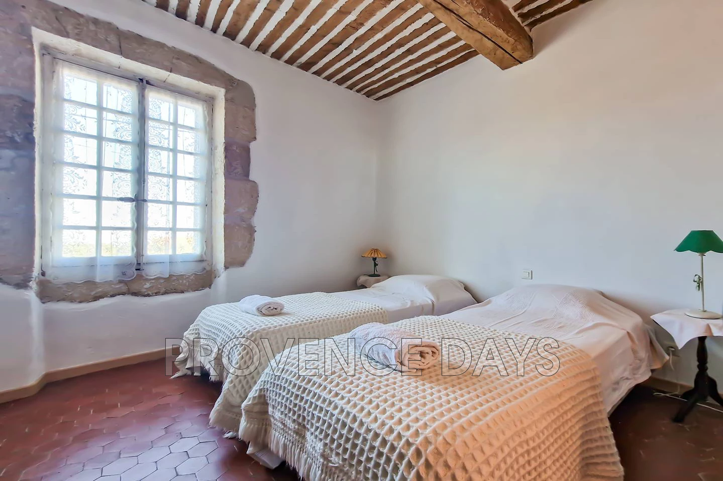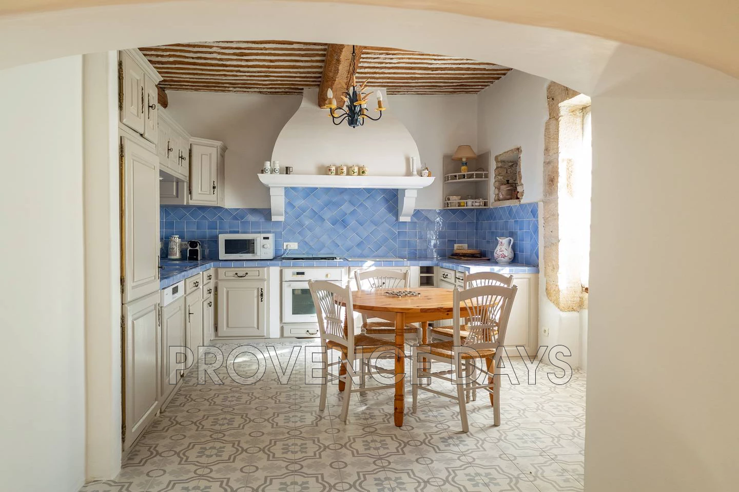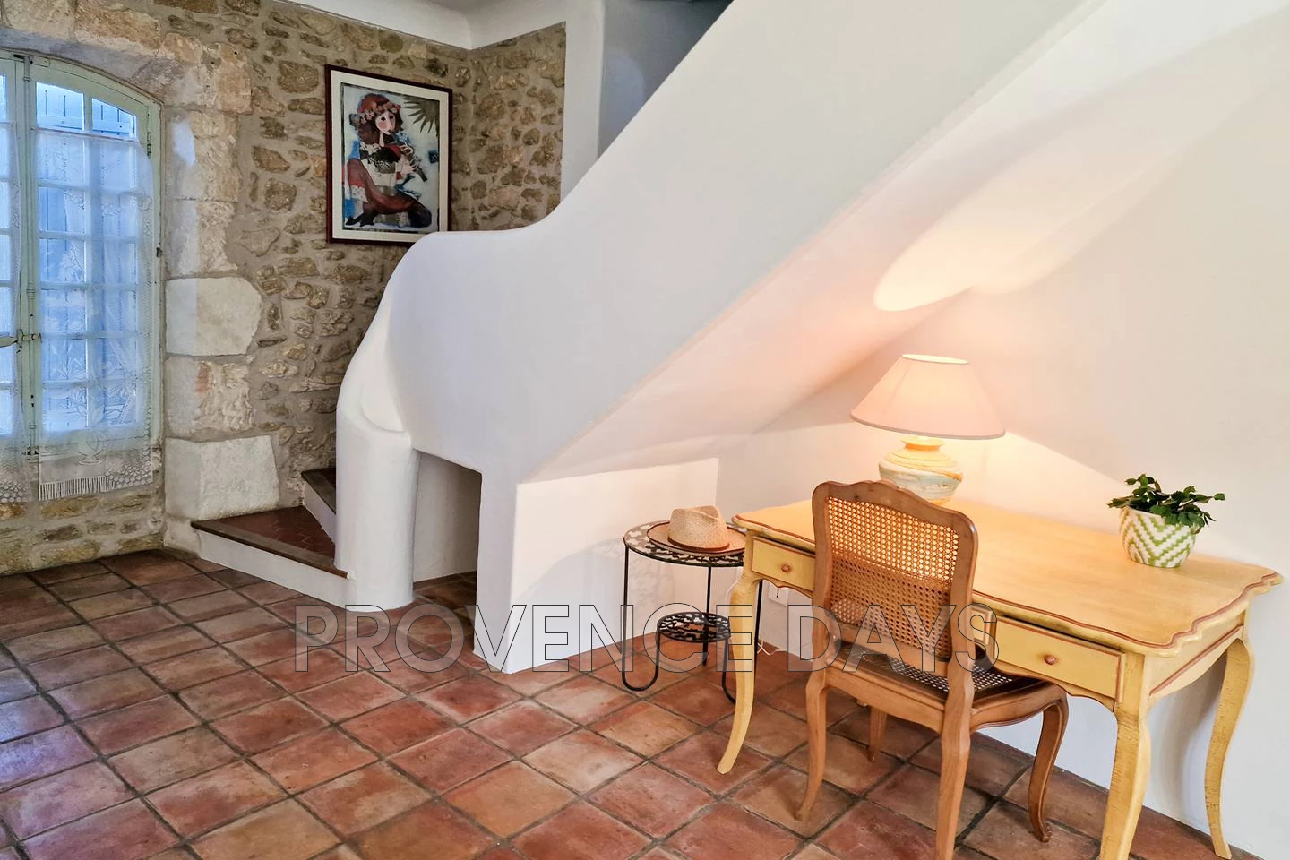 In the heart of the village of Robion is a hidden gem of a house, an authentic Provencal village house with 3 bedroom and the added bonus of a garden and pool tucked away behind the garden walls and stone archway. In a quiet part of the village the house is close to all the amenities of Robion but also close to the walking trails into the Luberon countryside. The archway entrance under the welcome shade of an acacia tree leads you into the delightful protected garden and pool area of this beautiful old town house that is accessed from the pool terrace. - Inside - Inside you find your self in a generous hallway with the kitchen to your right up a few step and the living room to your left, the hall way contains a seating area and workspace. The Salon is cosy with a seating area looking out to the pool, there is a dining area, a fireplace, a tv and a lovely window seat. The kitchen is well equipped with all you need cater for your stay including an oven, hob, fridge-freezer, microwave, and Nespresso coffee machine. - Bedrooms - The house sleeps up to 6 in 3 bedrooms 2 doubles and 1 twin room with a shared family bathroom and w.c. - Outside - The enclosed garden has a large terrace long the front of the house that has a several places to relax and dine including a comfortable outdoor seating area overlooking the pool. Unusually for a village house there is a pool in the garden which is delightful on warm days. The pool is protected by an alarm. Parking on the road side of the entry archway is enough for 1 or maximum 2 cars although alternative parking on the street nearby is available.
