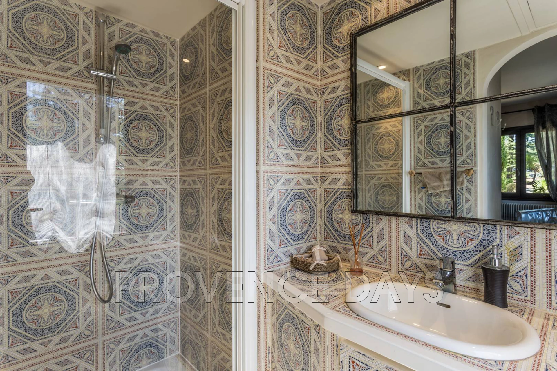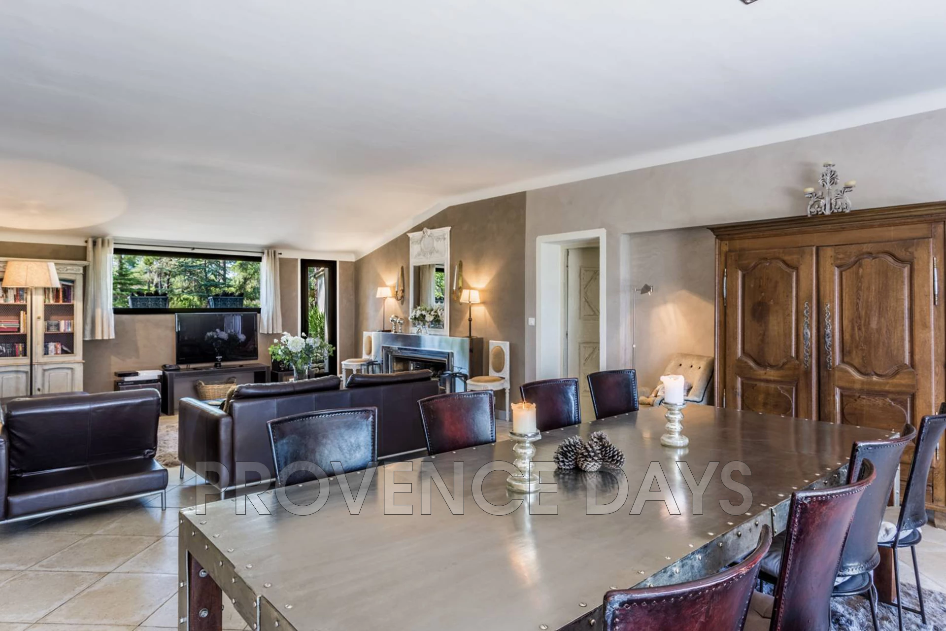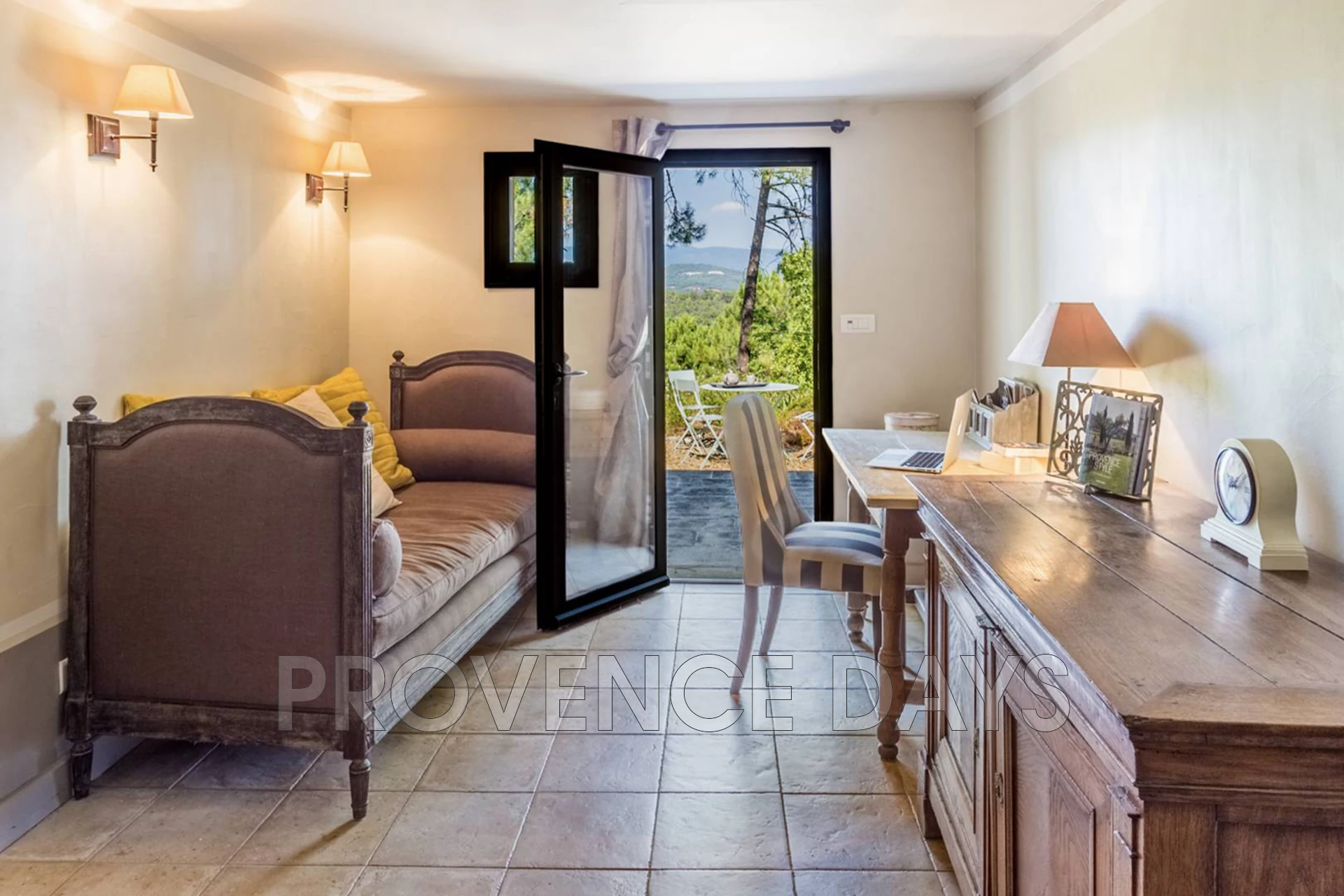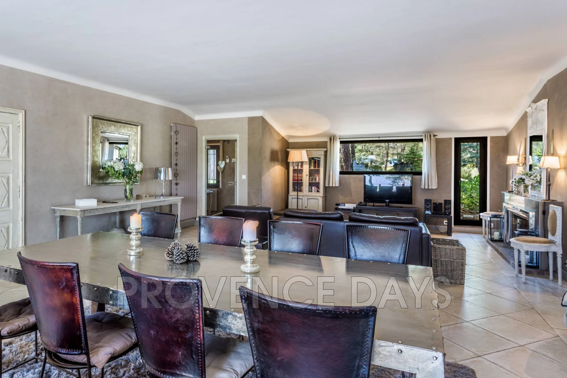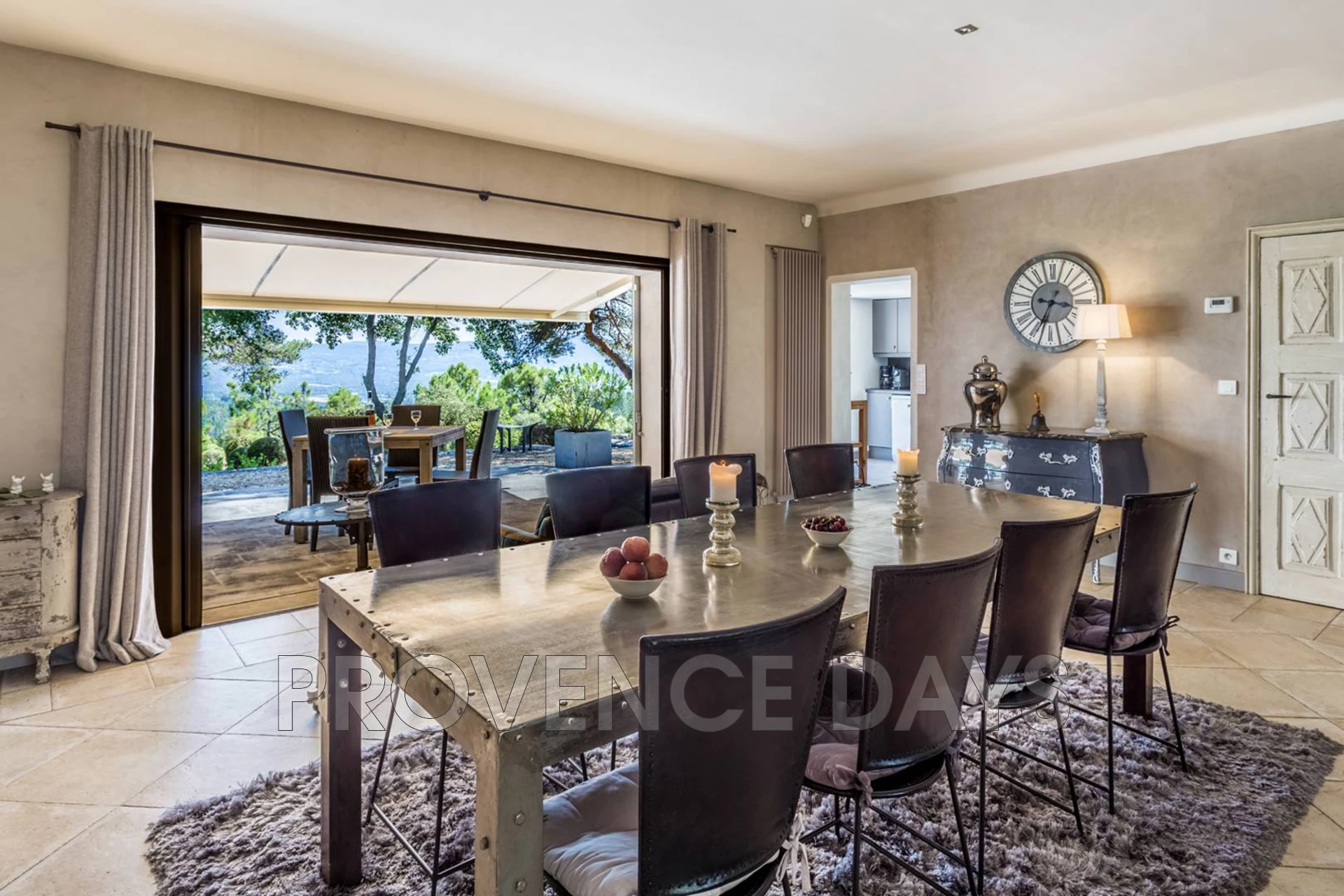 Villa Roussillon is a stylish single-storey villa for eight, offering breathtaking sunrise-to-sunset views, a heated pool, and seamless indoor-outdoor living. - Inside - The villa features air-conditioned bedrooms arranged to either side of a spacious central living and dining area, where wide sliding doors disappear into the walls to merge the inside and outside spaces. Living Room: A big space with leather sofas around a fireplace and TV/DVD in one half of the room, and the dining table in the other half. There are both French and English-language channels on the TV, and high-speed WiFi internet. Kitchen: Equipped with oven, 4-ring stove, fridge-freezer, dishwasher, microwave, filter coffee machine, and Nespresso. The kitchen also opens onto the south-facing terrace. Laundry Room: With washing machine, tumble dryer and a second fridge-freezer. Study: Writing desk and day-bed, next to the master bedroom. Guest WC - Bedrooms - Villa Roussillon sleeps 8 people with 4 air-conditioned double bedrooms and 3 bathrooms, all on the ground floor, and each bedroom has its own TV/DVD with satellite channels. Master Bedroom: Opening onto the main terrace, the master bedroom has a 1.8m/6ft-wide bed. The en suite bathroom has bath with handheld shower, double basins and toilet. Bedroom 2: With a 1.6m/5.25ft-wide bed. En suite bathroom with a shower and basin, and a separate toilet. Bedroom 3: With 1.4m/4.6ft-wide bed and shared connected bathroom with bedroom 4, with shower, basin and toilet. Bedroom 4: Sharing the third bathroom with bedroom 3, bedroom 4 has a 1.4m/4.6ft-wide bed. - Outside - From the terrace, garden and pool there is a fabulous view to the south. The hilltop villages of Bonnieux and Lacoste are framed against the backdrop of the Luberon mountain. There are 3 acres (1.25ha) of garden with terrace, pool area and pine trees. The pool is heated from May to October and measures 10m x 4.2m (33ft x 14ft). The pool has a sliding rigid cover for security, roman steps at one end and safety step along the sides. Around the pool are sun loungers and parasols, and of course that view. Outdoor dining can be on the terrace under an awning, or in the garden under the shade of the pergola alongside the bbq. Secure parking is to the rear of the house, and the entrance to the property is gated.